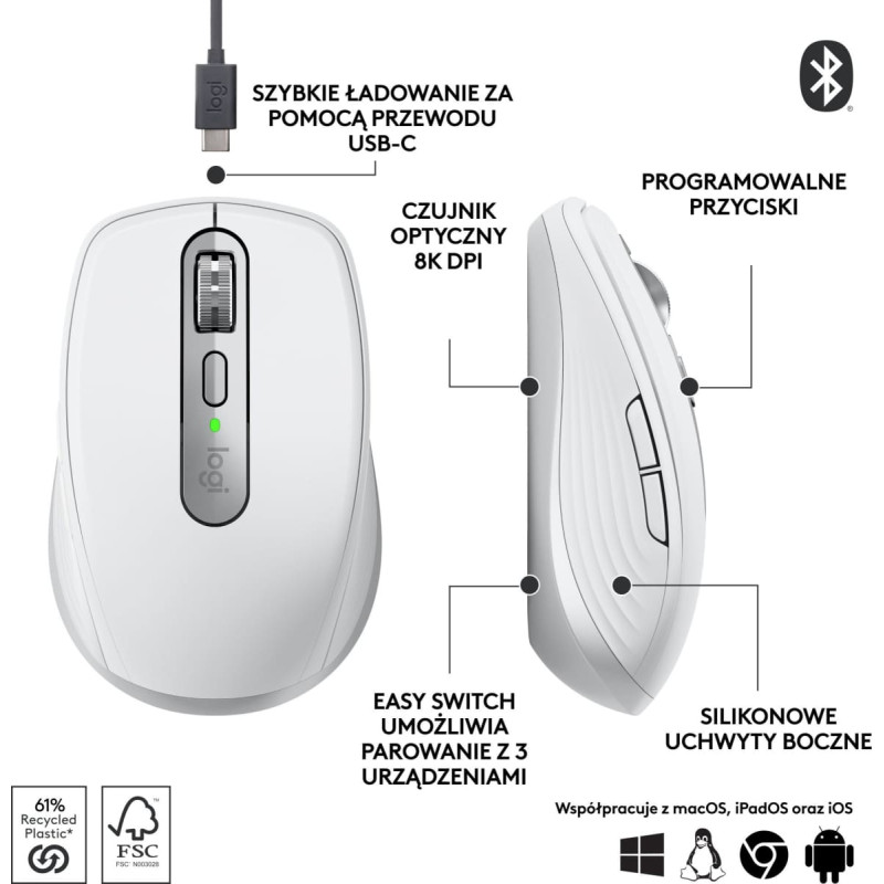 Logitech Mouse Logitech MX Anywhere 3S Pale Grey (910-006930)