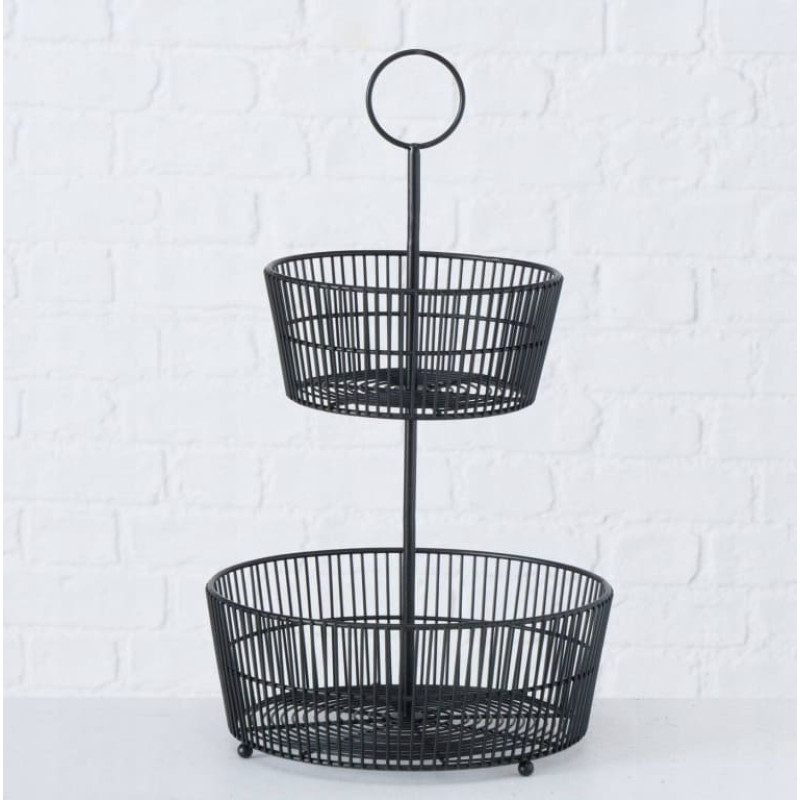 Boltze Patera dekoracyjna czarna GEA, dwa poziomy, wys. 44 cm