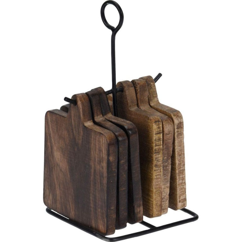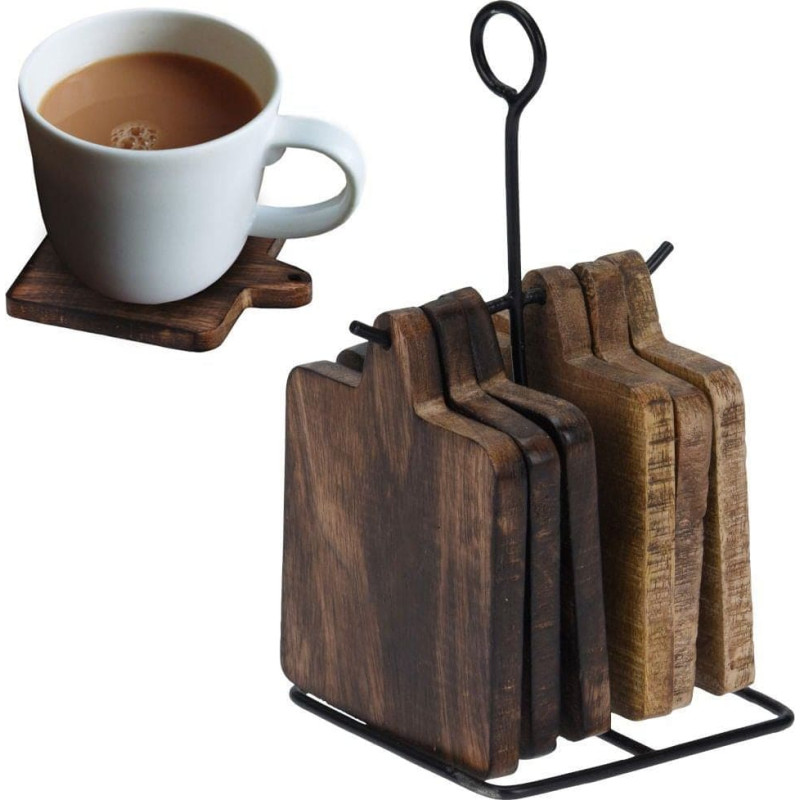 Home Styling Collection Podstawka podkładka drewniana pod kubek garnek 6 szt + stojak metalowy